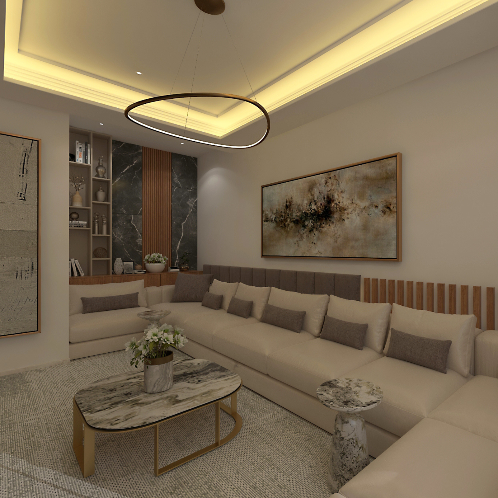 Un intérieur harmonieux combinant confort, esthétique et fonctionnalité pour un appartement à Rabat.